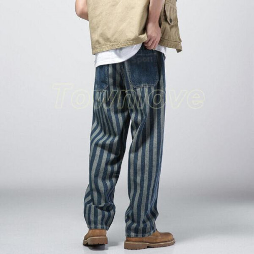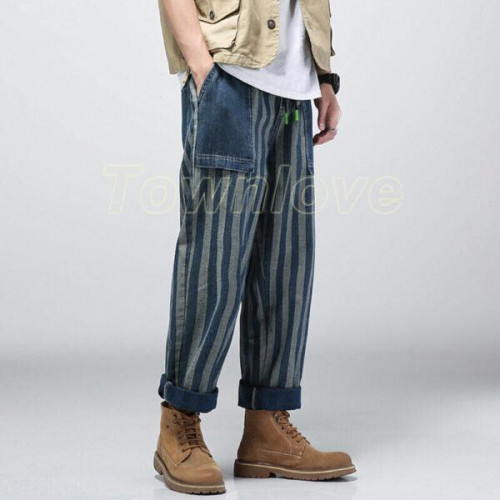 Mens Fashion Denim Loose Jeans Straight Pants Japanese Casual Trousers Korean